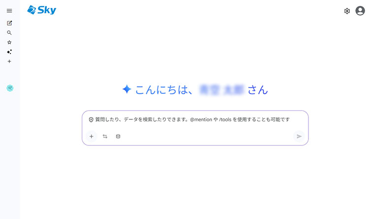 2023年11月にリリースした社内向けの生成AIサービスです。社内情報がそのまま活用できるよう情報セキュリティに配慮した設計で、安心して業務に活用できる環境を整えました。AIが関連情報を自律的に収集・分析してレポート形式で出力する「SKYAI Deep Research」を搭載しており、全社員が生産性向上のために思うようにAIが活用できる環境を整えています。