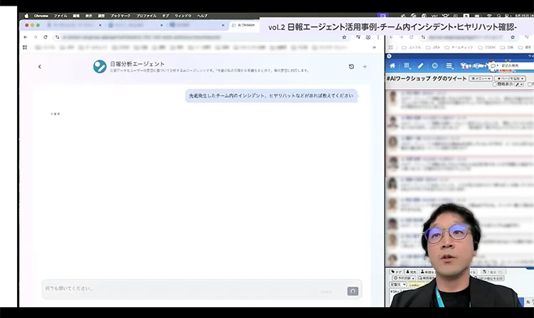提出済みの日報を解析したり、PCでの作業ログを分析したりするといった、目的別のAIエージェントを順次リリースしています。自分自身やチームメンバーの業務など、活動状況を可視化することでDX推進に役立てています。
